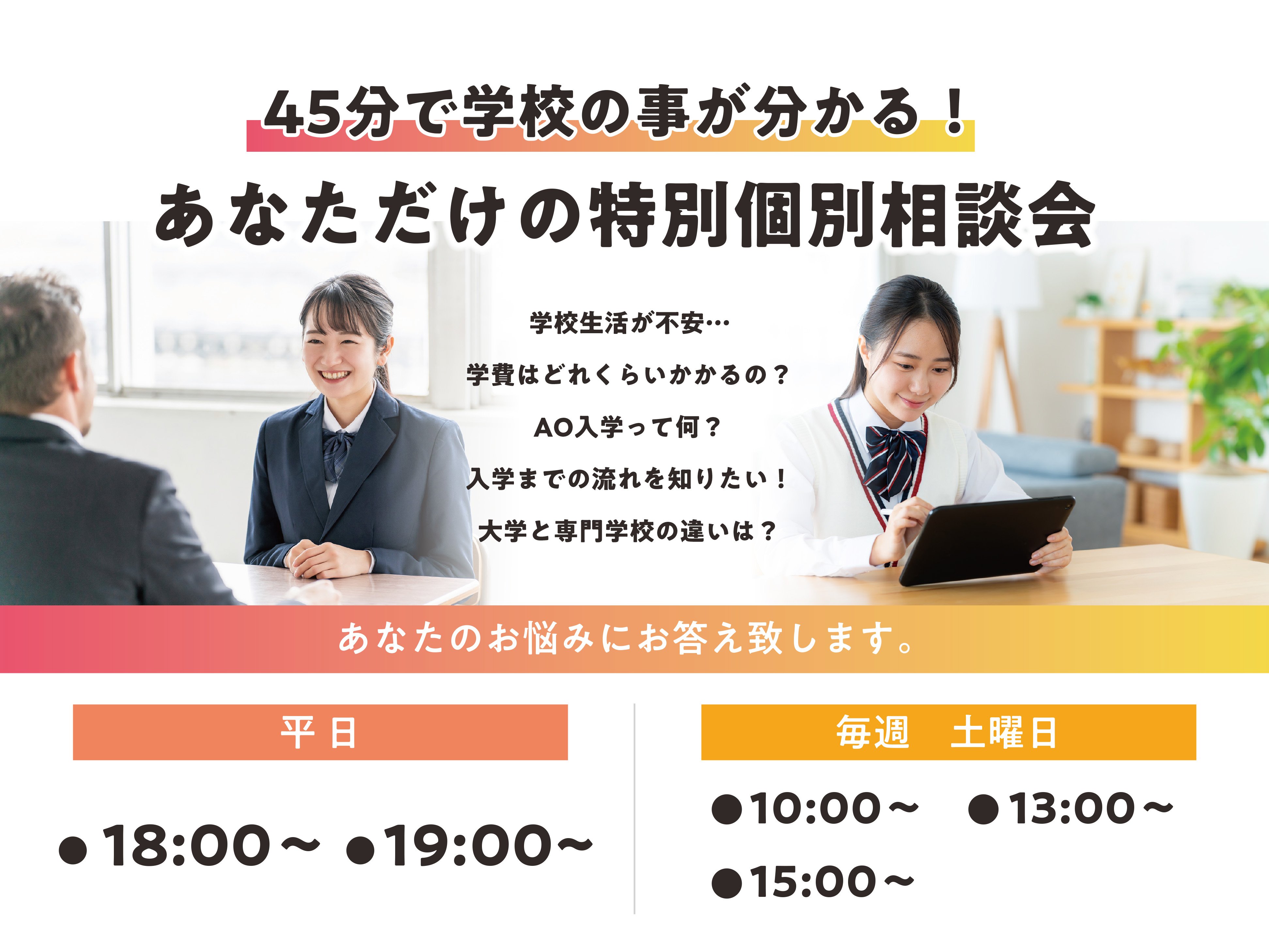 お子様が目指す業界・職業や就職について、入学制度や学費、奨学金制度等保護者の皆さまが抱える疑問や不安に専門スタッフがお答えします。
